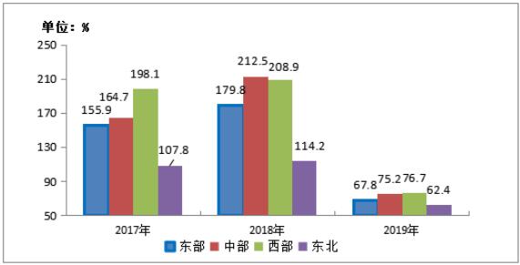 2016-2019年東、中、西、東北地區(qū)100Mbps及以上