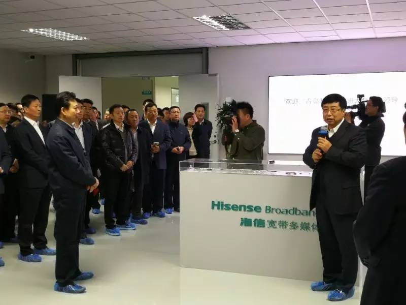 ICCSZ訊 3月9日,山東省委常委、青島市委書記李群帶領(lǐng)160人“青島制造”推進(jìn)大會觀摩團(tuán)參觀海信智能工廠。海信集團(tuán)董事長周厚健、海信寬帶多媒體公司總經(jīng)理張華向觀摩團(tuán)介紹了海信寬帶公司。