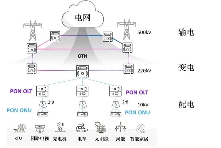 圖3:展示了POL網(wǎng)絡(luò)架構(gòu)及PON設(shè)備在整張電網(wǎng)中的位置。