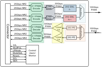 100G 雙載波DWDM QSFP28原理框圖