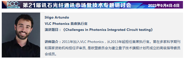 屆時(shí),日立高新技術(shù)集團(tuán)VLC Photonics CEO Inigo Artundo將在本屆訊石研討會(huì)9月4日專題三《下一代光技術(shù)發(fā)展論壇》上發(fā)表主題為《Challenges in Photonics Integrated Circuit testing》的演講,敬請期待!