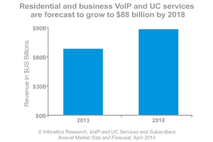 ICCSZ訊 日前,市場調(diào)研公司Infonetics發(fā)布其最新的2014年 IP語音(VoIP)和統(tǒng)一通信(UC)服務(wù)和用戶市場報告。