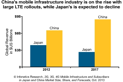 ICCSZ訊 日前,市場(chǎng)調(diào)研公司Infonetics發(fā)布其最新的關(guān)于中國(guó)和日本的2G、3G、4G移動(dòng)基礎(chǔ)設(shè)施和用戶市場(chǎng)報(bào)告。