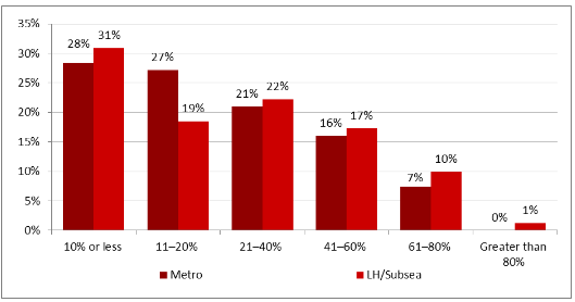 從現(xiàn)在到2025年,您預(yù)計城域/長途/海底網(wǎng)絡(luò)波長中部署的嵌入式800G相干光學(xué)器件占比多少?