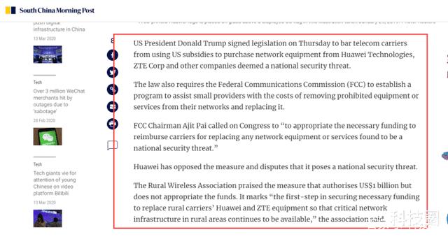 ICCSZ訊 華為和中興作為通信公司,在美國市場是有一定的占有率的,特別是在美國農(nóng)村和偏遠(yuǎn)地區(qū),華為和中興是有很大的市場。原因就是這些地方確實(shí)比較難以維護(hù)并且利潤不高,但是中興和華為依舊在做。但是現(xiàn)在FCC是不給補(bǔ)貼的,導(dǎo)致了華為和中興無法在持續(xù)下去。但是除了這個之外,美國再次簽署法案,禁止使用華為和中興的設(shè)備。
