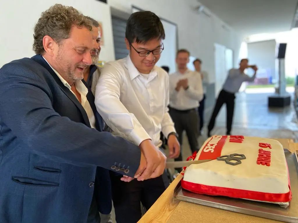 在恰逢園區(qū)運(yùn)營15周年之際,周濤與Peter共同切下達(dá)產(chǎn)蛋糕。在現(xiàn)場熱烈的氣氛中,共同祝賀一期工程正式達(dá)產(chǎn)。