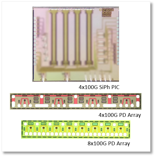 - 集成硅光MZM PIC、Ge/Si PD、TIA、Driver等
