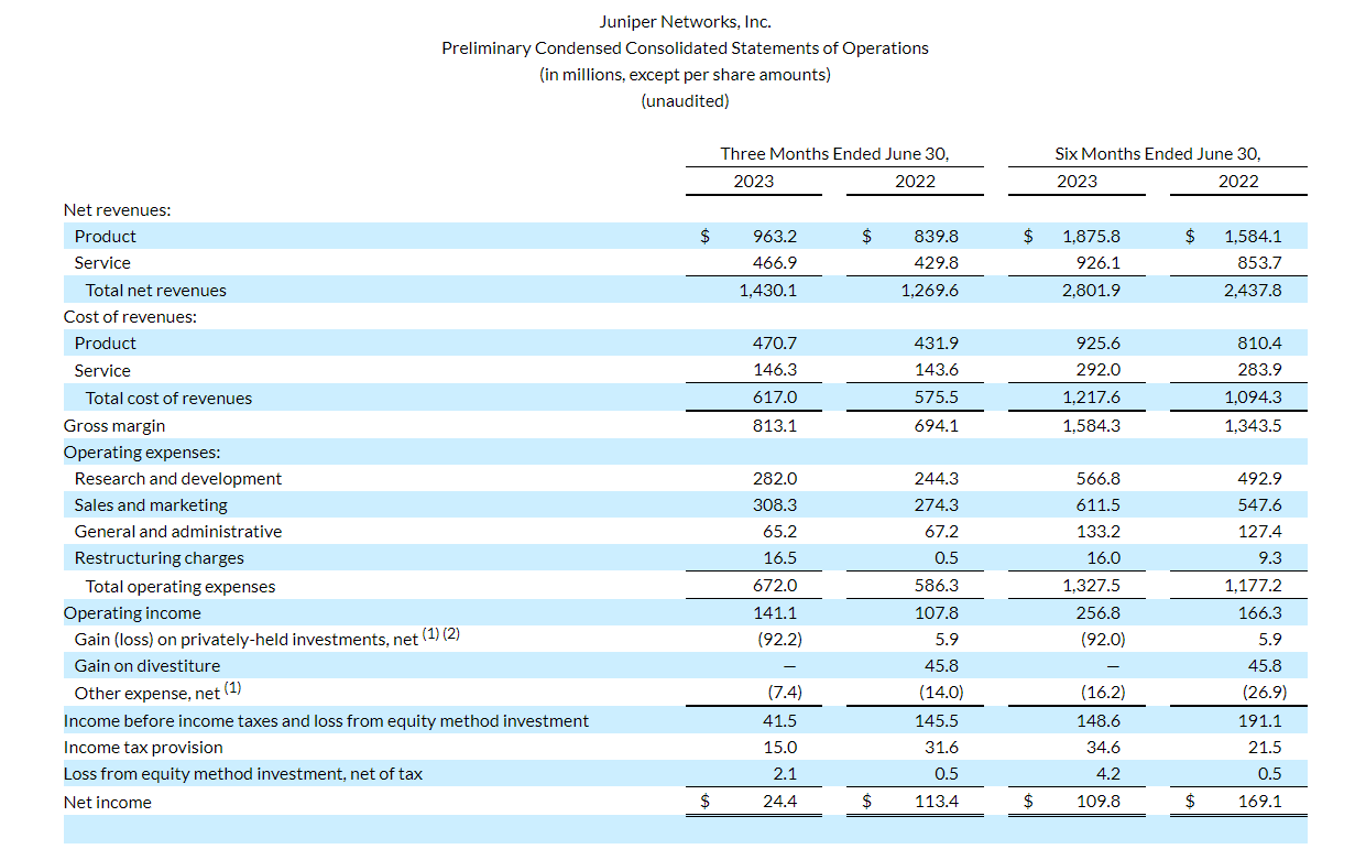 ICC訊(編譯:Vicki)Juniper網(wǎng)絡(luò)公布了截至到2023年6月30日第二季度財(cái)務(wù)業(yè)績(jī)和對(duì)2023年9月30日第三季度的展望。