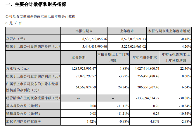 ICCSZ訊(編輯:Jane)29號晚間消息,華工科技產(chǎn)業(yè)股份有限公司公布第三季度財務(wù)報告,報告顯示,前三季度華工科技營收為40.28億元,同比增長22.30%;歸屬上市股東凈利潤2.56億元,同比增長0.6%。第三季度公司營收為12.86億元,同比增加1.88%;歸屬上市股東凈利潤7582.83萬元,同比減少3.77%。
