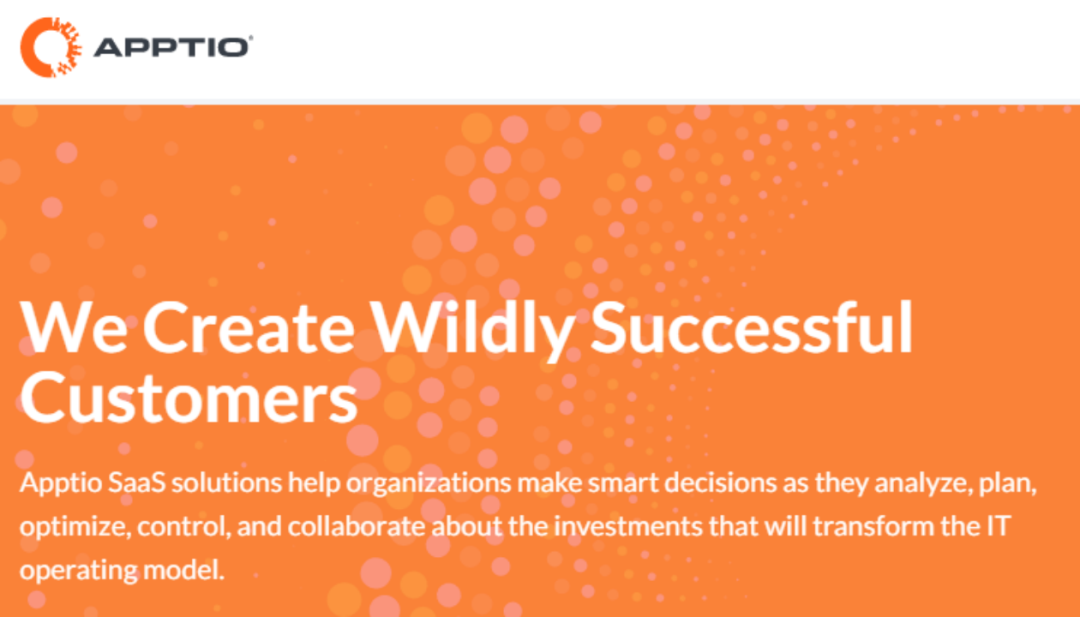資料顯示,Apptio成立于2007年,業(yè)務(wù)涉及銷售在線服務(wù),幫助企業(yè)管理信息技術(shù)預(yù)算、預(yù)測(cè)和分析。該公司網(wǎng)站顯示,大多數(shù)《財(cái)富》100強(qiáng)企業(yè)都在使用其產(chǎn)品,例如金融巨頭好事達(dá)(Allstate)和美國(guó)銀行(Bank of America)。