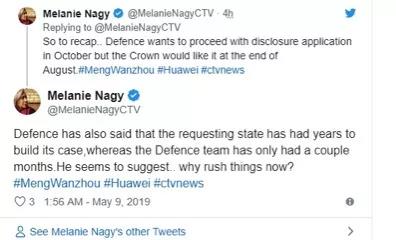 另據(jù)環(huán)球時(shí)報(bào)微信消息,華為公司在聲明中提到的這些辯護(hù)信息,也得到了今天凌晨參加聽證會的多名加拿大記者的證實(shí)。這些加拿大記者在自己的社交賬號上也發(fā)布了這些辯護(hù)的信息: