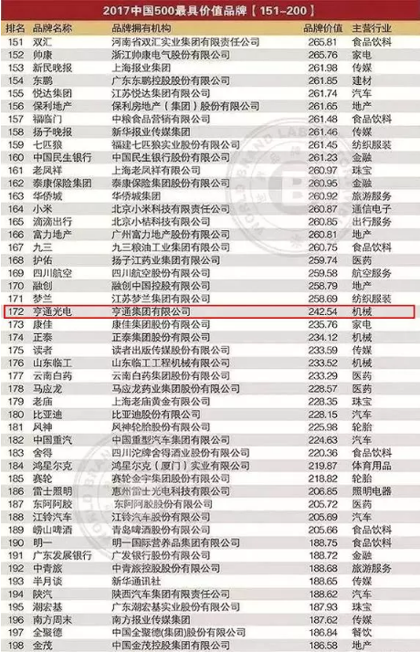 作為全球光纖通信前3強(qiáng)、中國(guó)光纖光網(wǎng)、電力電網(wǎng)領(lǐng)域規(guī)模最大的系統(tǒng)集成商與網(wǎng)絡(luò)服務(wù)商,20多年來(lái),亨通品牌價(jià)值不斷提升,先后獲中國(guó)馳名商標(biāo)、中國(guó)名牌產(chǎn)品、中國(guó)通信工業(yè)最有價(jià)值品牌、中國(guó)通信市場(chǎng)最具影響力行業(yè)品牌等殊榮,連續(xù)多年入圍中國(guó)500最具價(jià)值品牌。2017年,亨通以242.54億元的品牌價(jià)值位列品牌榜第172名,實(shí)現(xiàn)了品牌價(jià)值的連年攀升。