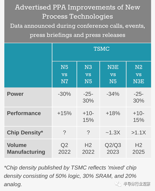 *請(qǐng)注意,臺(tái)積電在 2020 年左右才開(kāi)始分別發(fā)布針對(duì)模擬、邏輯和 SRAM 的晶體管密度增強(qiáng)。其中一些數(shù)字仍然反映了由 50% 邏輯、30% SRAM 和 20% 模擬組成的“混合”密度