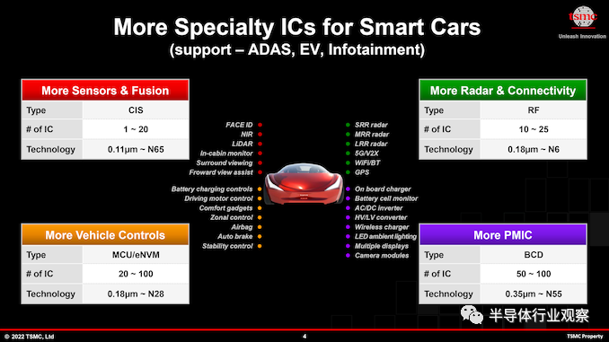 現(xiàn)代智能手機(jī)、智能家電和個(gè)人電腦已經(jīng)使用了數(shù)十種芯片和傳感器,而這些芯片的數(shù)量(和復(fù)雜性)只會(huì)越來(lái)越多。這些零件使用更先進(jìn)的專業(yè)節(jié)點(diǎn),這也是臺(tái)積電等公司必須擴(kuò)大原本“舊”節(jié)點(diǎn)的產(chǎn)能以滿足未來(lái)幾年不斷增長(zhǎng)的需求的原因之一。