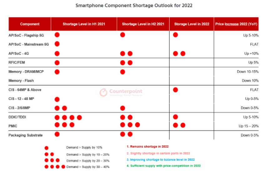 ICC訊 根據(jù)Counterpoint Research發(fā)布的最新報(bào)告顯示,隨著大多數(shù)組件的供需差距縮小,全球芯片短缺可能會(huì)在2022年下半年緩解。