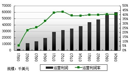 盛大本季度運(yùn)營(yíng)利潤(rùn)達(dá)6040萬(wàn)美元,環(huán)比增長(zhǎng)7.9%,同比增長(zhǎng)58.1%,運(yùn)營(yíng)利潤(rùn)率為40.7%,與上個(gè)季度和去年同期基本持平。