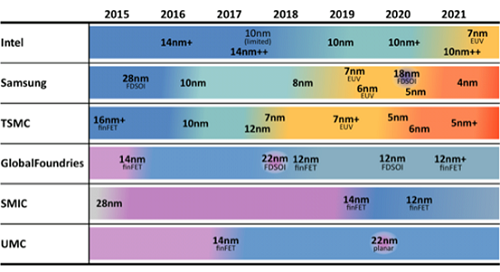2015~2021年主要晶圓廠制程發(fā)展進度資料來源:IC Insights(2/2020)