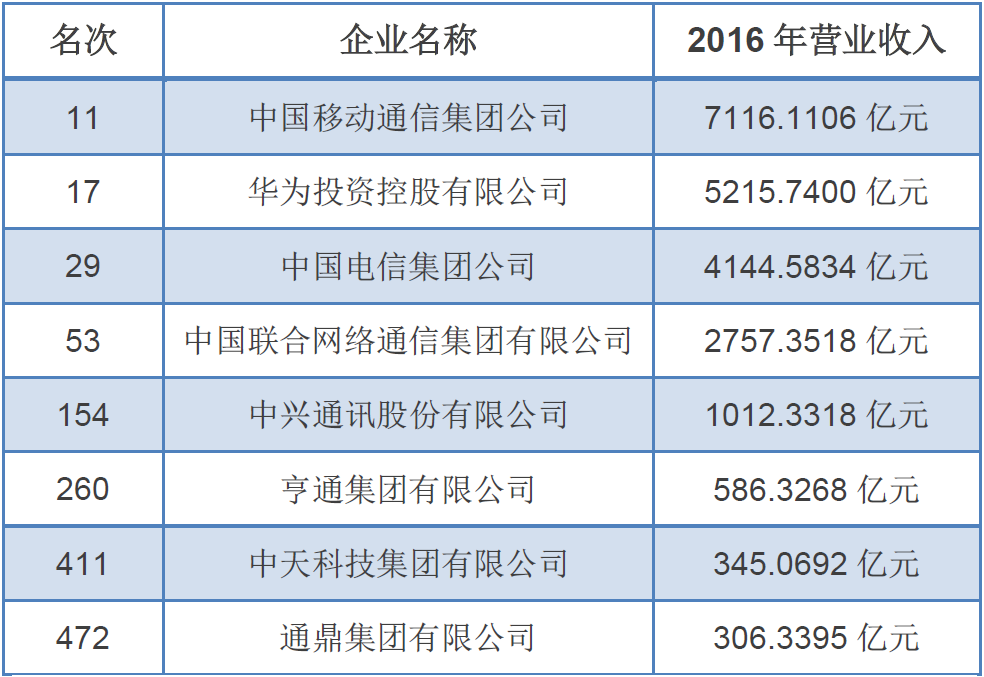 ICCSZ訊 9月10日,中國企業(yè)聯(lián)合會、中國企業(yè)家協(xié)會在南昌正式發(fā)布了“2017中國企業(yè)500強榜單”,多家通信企業(yè)榮登榜單。