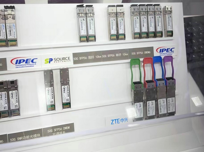 圖二:索爾思光電在IPEC展臺(tái)展示50G SFP56全系列產(chǎn)品