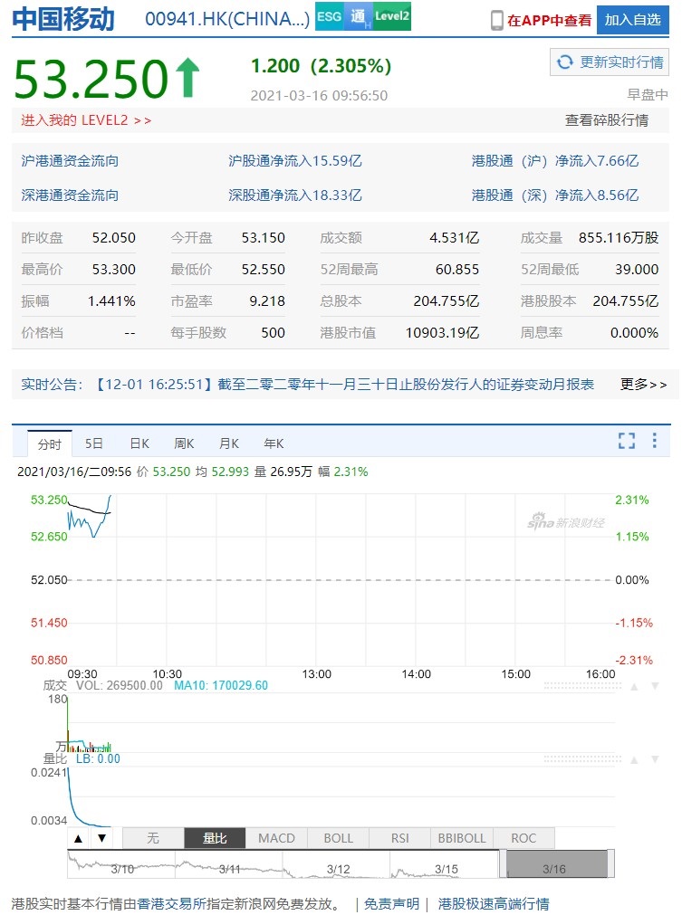 ICC訊 據(jù)報道,彭博社獲悉,據(jù)知情人士透露,中國移動在考慮美股摘牌后進行 A 股上市。