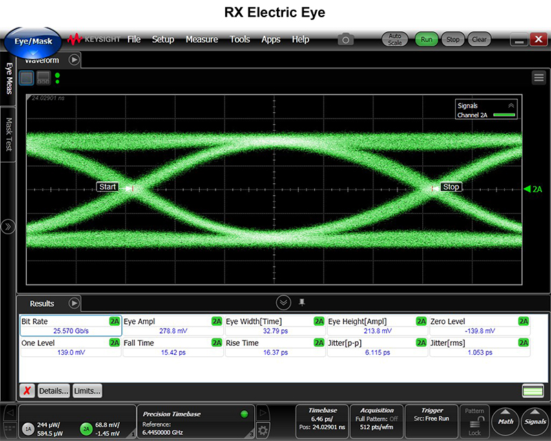 TX光眼圖,RX電眼圖,功耗和誤碼測試數(shù)據(jù),請詳見下列圖表: