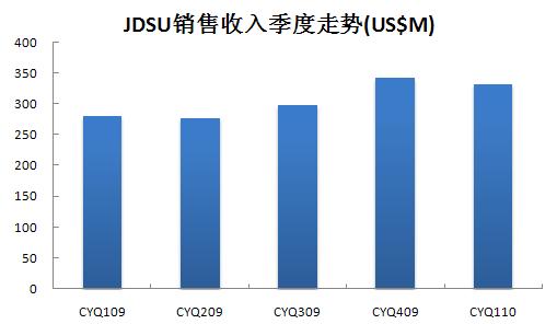 JDSU今天公布了截至2010年4月3日的第三財(cái)季財(cái)報(bào),2010財(cái)年Q3銷售收入為3.323億美元,