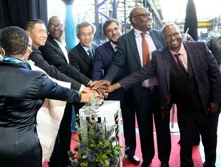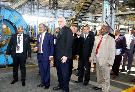 舉行投產(chǎn)儀式之前,在亨通南非阿伯代爾電纜(Aberdare Cables)CEO宋海燕博士等的陪同下,林松添大使和帕特爾部長等一行參觀考察了工廠新投資的設(shè)備和車間。公司嶄新的車間和先進(jìn)的設(shè)備以及中南互利合作模式受到南方一致稱贊。