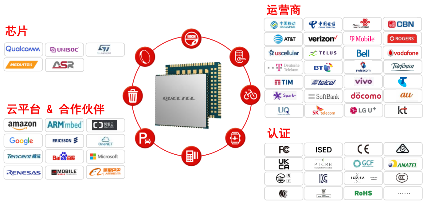 張棟指出,移遠通信高速的發(fā)展得益于公司強大的生態(tài)建設,目前移遠通信在芯片、運營商、云平臺&合作伙伴和認證環(huán)節(jié)建立了陣營龐大的IoT生態(tài)系統(tǒng),為全球物聯(lián)網(wǎng)產(chǎn)業(yè)發(fā)展賦能。在產(chǎn)品分類上,移遠通信提供蜂窩模組、Wi-Fi & BT模組、GNSS模組、天線和QuecCloud一站式解決方案。