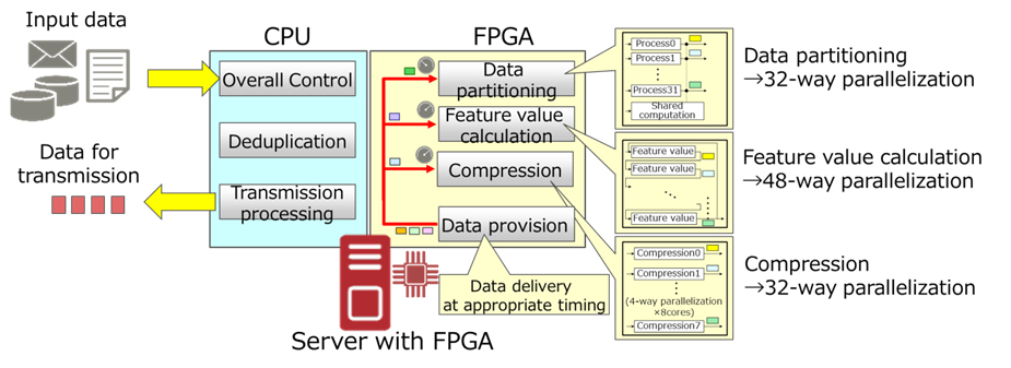 富士通實(shí)驗(yàn)室開發(fā)了FPGA并行化技術(shù),可以大大減少所需的處理壓縮和重復(fù)數(shù)據(jù)刪除的時(shí)間,以及在一個(gè)FPGA高度并行配置中處理無(wú)損壓縮,通過使高度并行運(yùn)行的計(jì)算單位提供數(shù)據(jù)在適當(dāng)?shù)臅r(shí)間預(yù)測(cè)的基礎(chǔ)上完成計(jì)算。
