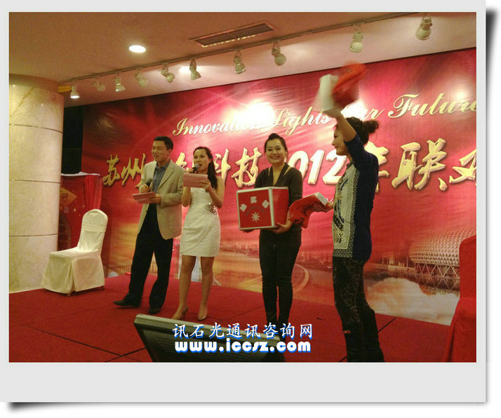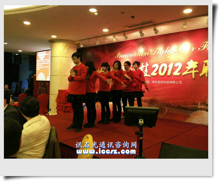 【訊石光通訊咨詢網(wǎng)】1月27日晚上,訊石會員蘇州旭創(chuàng)科技有限公司2012年會在蘇州維景國際酒店拉開帷幕,共有四百四十多名員工及客戶代表參加,現(xiàn)場氣氛熱烈,熱鬧非凡。