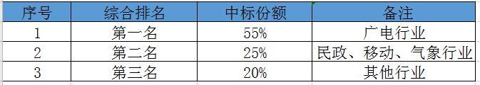 本項(xiàng)目中標(biāo)人數(shù)量為3個(gè),每個(gè)中標(biāo)人對(duì)應(yīng)的份額如下: