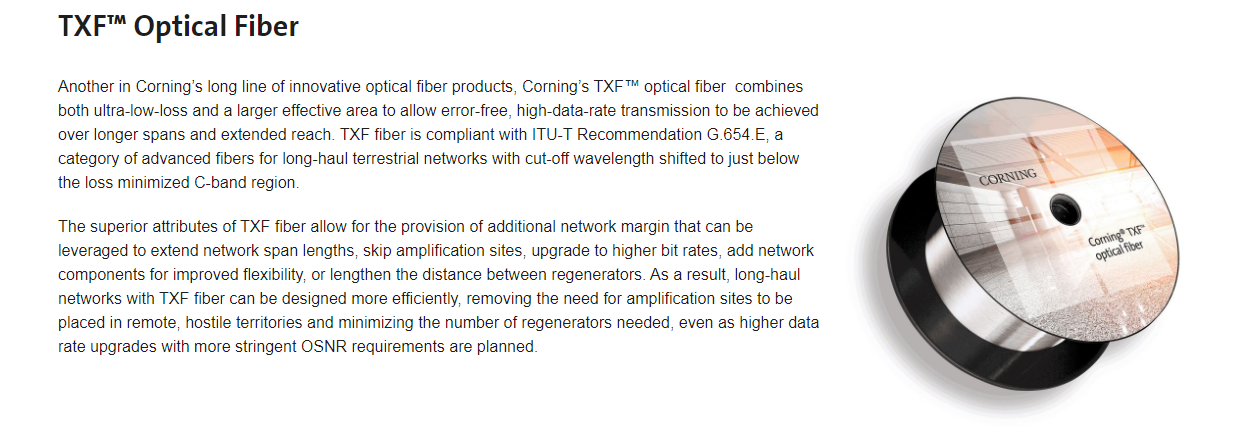 康寧TXF光纖優(yōu)化下一代長途網(wǎng)絡(luò)