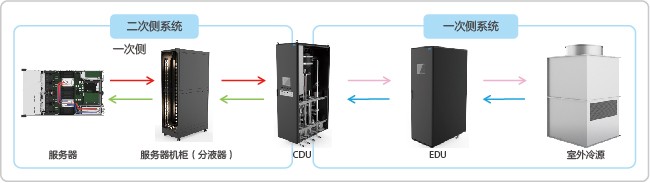 液冷技術(shù)是中興通訊打造極致PUE、助力綠色數(shù)據(jù)中心的關(guān)鍵路徑之一。中興通訊已推出全液冷系統(tǒng)解決方案,由室外冷源、液冷服務(wù)器機(jī)柜、CDU(Coolant Distribution Unit)、EDU(External cooling system Distribution Unit)四部分組成(見圖1)。