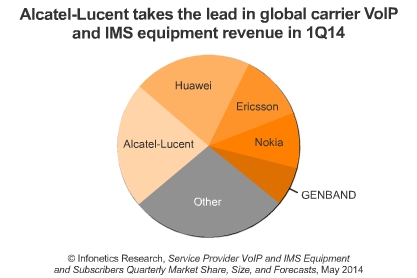 *2014年一季度該市場的領(lǐng)導(dǎo)廠商為阿朗,阿朗主要受益于北美地區(qū)核心IMS和語音應(yīng)用服務(wù)器市場的強(qiáng)勁增長。