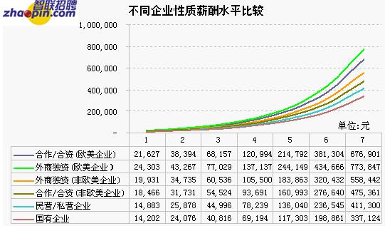 薪酬水平明顯低于歐美企業(yè),分列第三、第四位。民營(yíng)/私營(yíng)、國(guó)有企業(yè)與外資企業(yè)間的