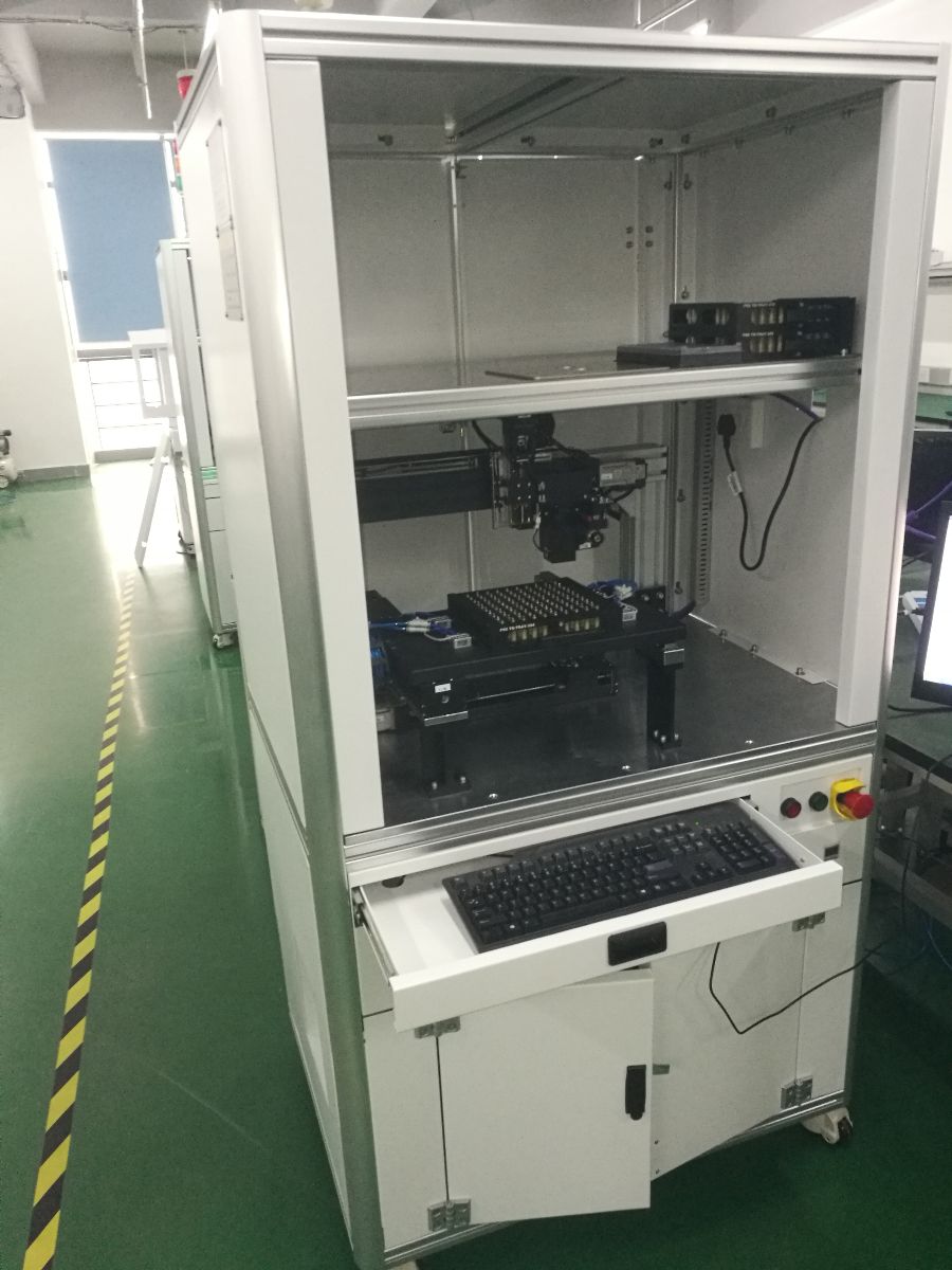▲OSA器件焦距測(cè)試與壓配一體化設(shè)備,采用了最新的圖像識(shí)別識(shí)別軟件算法 適合批量化自動(dòng)化生產(chǎn)。