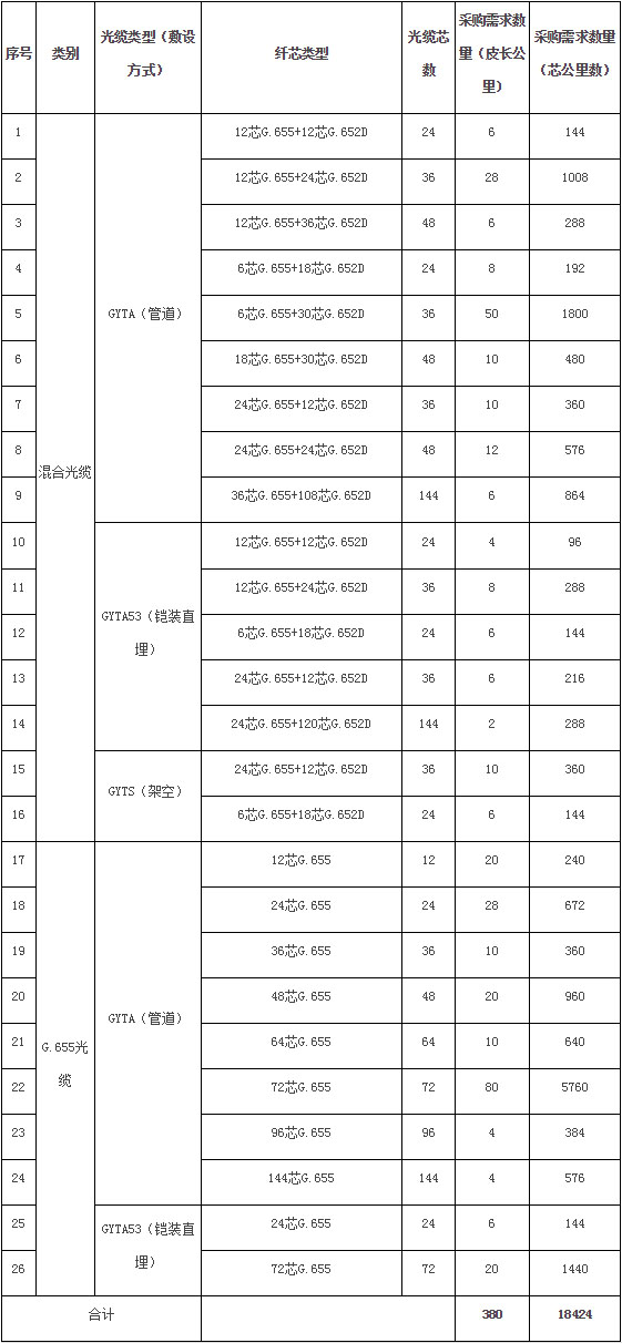 ICCSZ訊 (編輯:Nicole) 近日,中國移動官方發(fā)布安徽移動2019-2020年度G.655光纜及混合光纜選型采購項目招標公告:采購內(nèi)容為G.655光纜及混合光纜,合計26個類型,共380皮長公里。