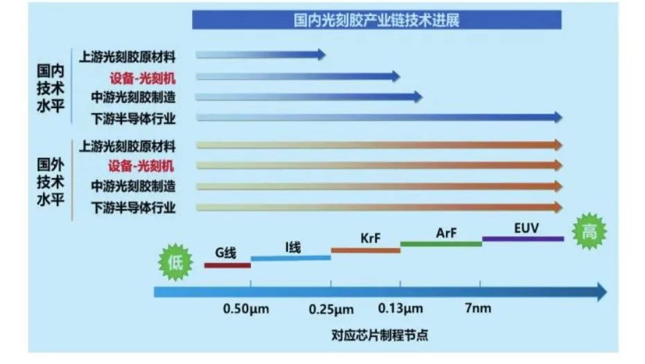 圖:國內(nèi)外光刻膠產(chǎn)業(yè)鏈對比