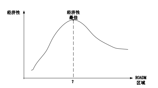 圖2. ROADM區(qū)域與建網(wǎng)經(jīng)濟性的曲線關(guān)系