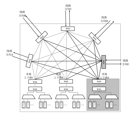 e)容量可擴。采用區(qū)域化組網(wǎng)模式,能充分發(fā)揮ROADM的多維能力,線路維度和本地維度均可按需擴容,平滑增加線路方向和上下波數(shù)量,解決波長沖突,具備良好的可擴展性。