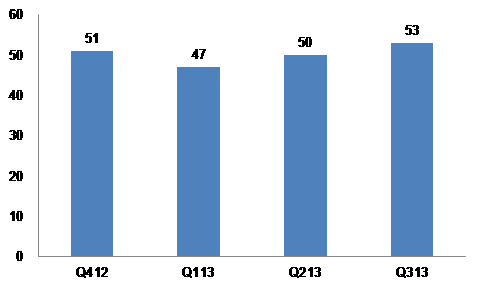 *2013年三季度,全球總交換機端口出貨量與2012年相同時期相比達到兩位數(shù)增長,總數(shù)達到1.22億端口出貨;