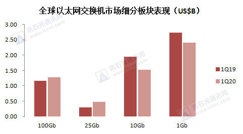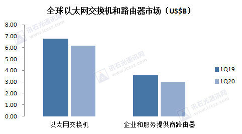 ICC訊(編譯:Nina)IDC的報(bào)告顯示,2020年第一季度(1Q20),全球以太網(wǎng)交換機(jī)市場(chǎng)收入61.6億美元,同比下降8.9%。同時(shí),全球企業(yè)和服務(wù)提供商路由器市場(chǎng)收入29.9億美元,同比下降16.4%。