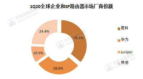 2020年第一季度,全球企業(yè)和服務(wù)提供商路由器市場(chǎng)同比下降16.4%,其中占75.1%收入的服務(wù)提供商板塊同比下降16.8%,剩下的企業(yè)板塊同比下降15.3%。