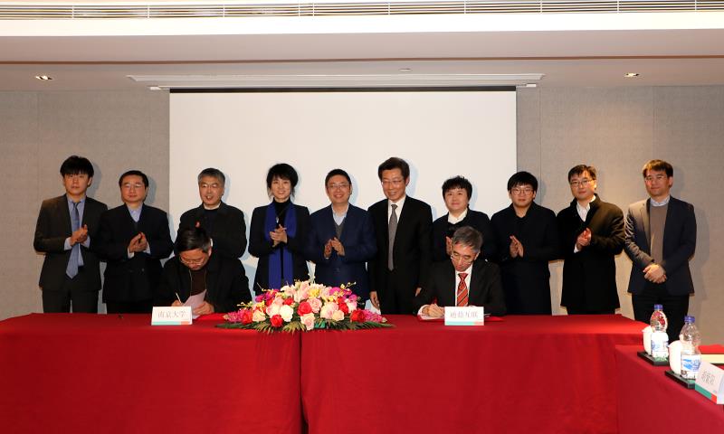 南京大學(xué)雙創(chuàng)中心主任高新房與通鼎互聯(lián)副總經(jīng)理共同簽署合作協(xié)議