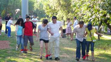 “結(jié)隊(duì)而行”游戲,紅絲巾譜起“一路同行” |