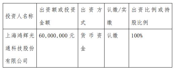 2021年7月2日,鴻輝光通召開第三屆董事會第二十四次會議,9票同意,0票反對,0票棄權(quán),審議通過了《關(guān)于公司擬投資設(shè)立全資子公司的議案》,為增加企業(yè)核心競爭力更好的實現(xiàn)公司戰(zhàn)略發(fā)展目標,上海鴻輝光通科技股份有限公司擬在江西省鷹潭高新技術(shù)產(chǎn)業(yè)開發(fā)區(qū)設(shè)立全資子公司江西鴻輝光通器件有限公司,注冊資本6,000 萬元,經(jīng)營范圍為:光器件的研發(fā)、生產(chǎn)及銷售【具體以工商登記為準】。
