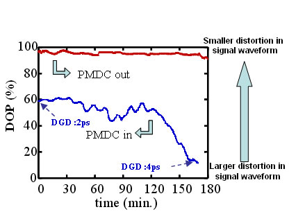 而且,除了3R再生中繼裝置之外,還同時開發(fā)了能自動補償被稱為偏振模色散的光纖專有傳輸路特性變化的偏振模色散補償裝置。在傳輸路光纖核心的橢圓化引起波形失真增加的現(xiàn)象下,偏振模色散受每天的氣溫變化等傳輸環(huán)境的影響而時時刻刻在變化。而且,因為傳輸速度越快,受到的影響越大,對于每秒40千兆位以上的傳輸系統(tǒng),偏振模色散補償不可缺少。沖電氣此次開發(fā)的偏振模色散補償裝置應用了充分發(fā)揮光3R中繼裝置性能的特殊設計。