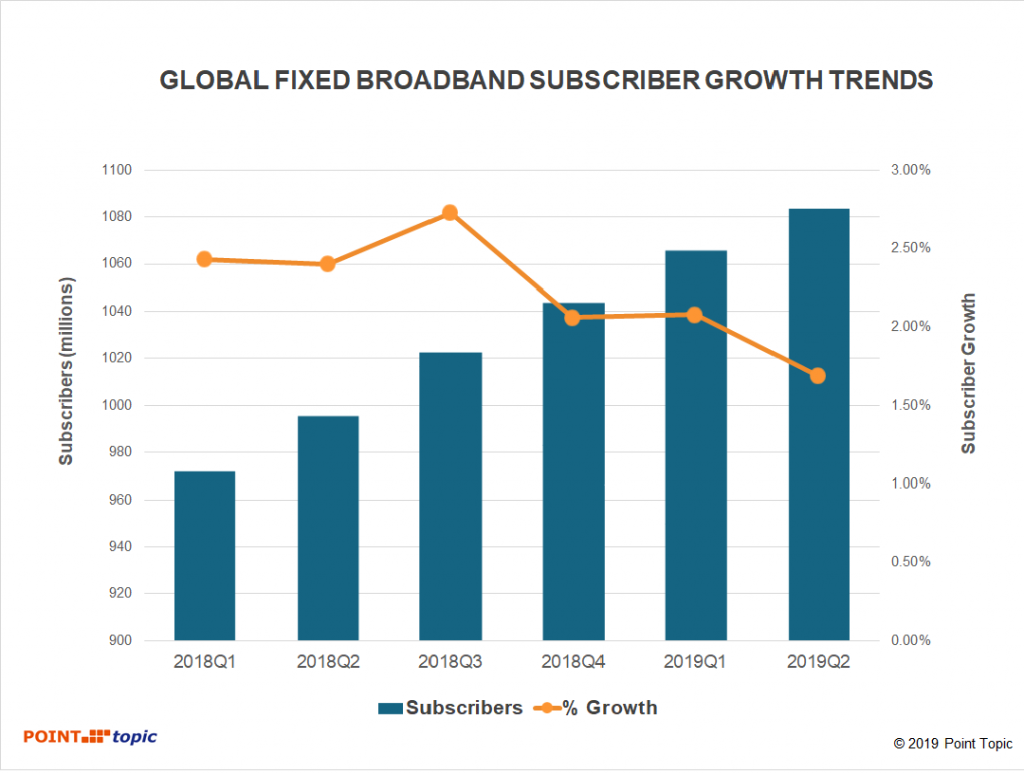 2019年第二季度全球固定寬帶的主要趨勢:
