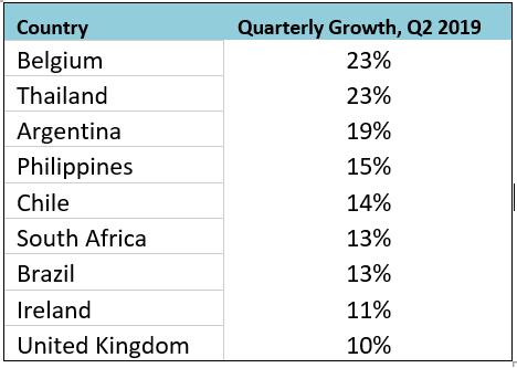 與上一季度相比,2019年第二季度,東歐增長率為 0.29%,美國其他地區(qū)增長率為0.18%(圖5)。