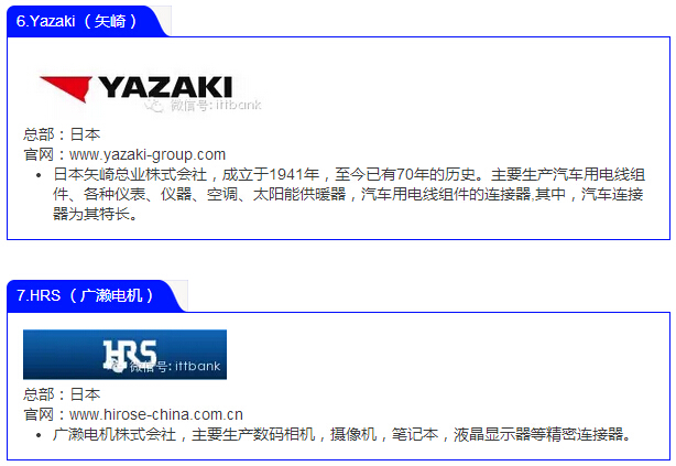 1)汽車線束廠家一般都是連接器大廠,如泰科電子、FCI、韓國KET、矢崎、住友電氣、德爾福等;